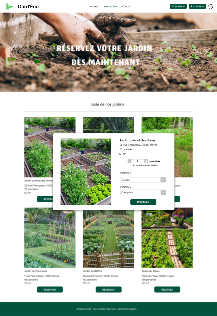 Réservation de parcelles: Réservez et gérez vos parcelles en ligne, choisissez les plantes, et spécifiez la date et le nombre de parcelles.